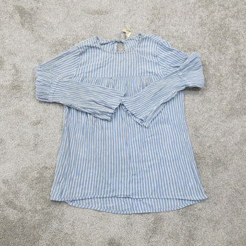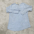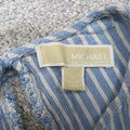 Michael Kors Blouse Top Striped Crew Neck Long Sleeves Keyhole Back White Blue M