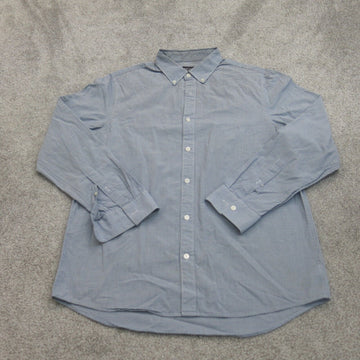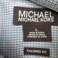 Michael Kors Mens Check Button Down Shirt Tailored Fit Long Sleeves Blue Size L