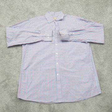 Michael Kors Mens Check Button Up Shirt Long Sleeves Red Blue Size 16 34/35