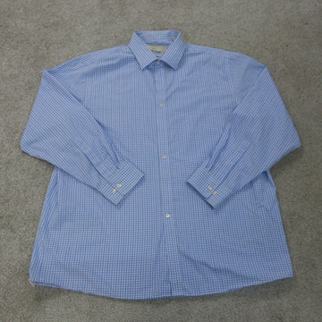 Michael Kors Shirt Mens Large Blue White Button Up Gingham Long Sleeve Non Iron