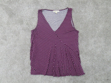 Michael Kors Women Tank Blouse Sleeveless V Neck Black Purple Size X Large