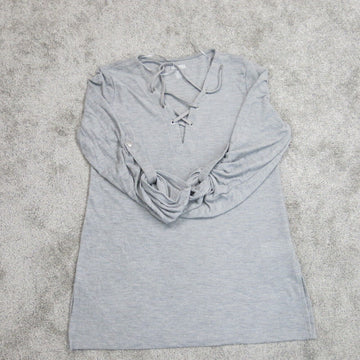 Michael Kors Womens Blouse Top Long Sleeves Lace Up V Neck Heather Gray Size M