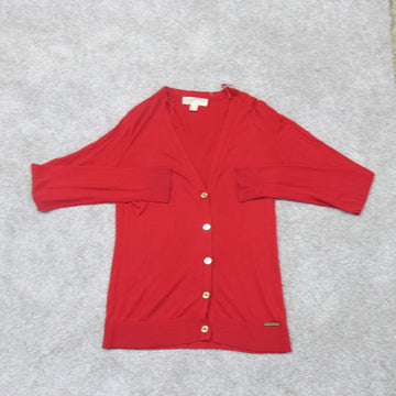 Michael Kors Womens Cardigan Sweater Top Collar Long Sleeve Red Size XS