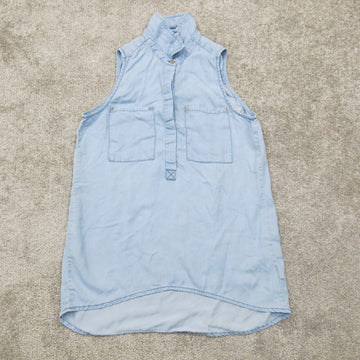 Michael Kors Womens Chambray Shirt Front Button Sleeveless Pocket Blue Size XS