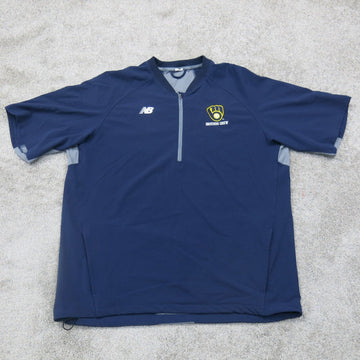 New Balance Mens Sweatshirt 1/4 Zip Short Sleeves V-Neck Blue Size Large