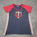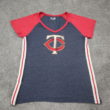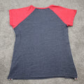 New Era Womens T Shirt Top Short Sleeve V Neck Casual Tee Gray Red Size XL
