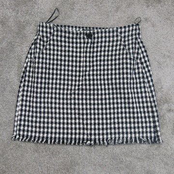 NEW Zara Womens Plaid Mini Skirt Pull On Black & White Size Large Cotton Blend