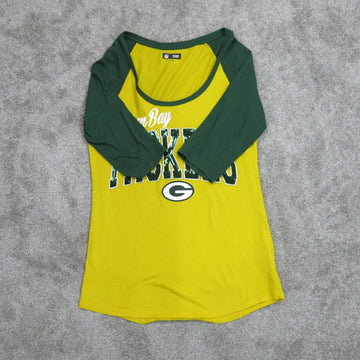 NFL Womens Green Bay Packers Raglan Sleeve T Shirt 100% Cotton Yellow Green S