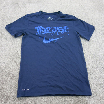 Nike Boy T Shirt Top Crew Neck Dri Fit Graphic Tee Short Sleeve Navy Blue Size S