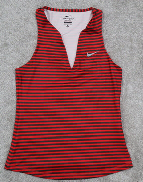 Nike Dri Fit Athletic Top Women's Small Red Black Striped Sleeveless Sports Logo