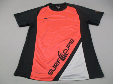 Nike Dri Fit Mens Crew Neck T Shirt Short Sleeves Surf Cup#12 Orange Black SZ M