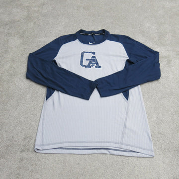 Nike Dri Fit Mens Long Sleeve Baseball T Shirt Crew Neck Logo Blue Gray Size M