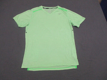 Nike DRI FIT Running Womens Short Sleeve Tee Shirt V Neck Back Zip Light Green M