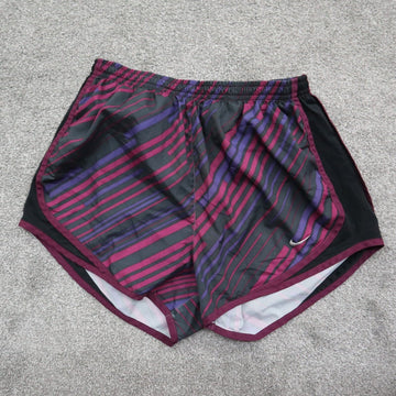 Nike Dri Fit Women Athletic Shorts Striped Running Elastic Waist Green/Red SZ S