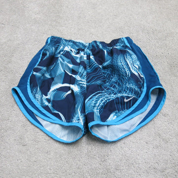 Nike Dri Fit Womens Athletic Tanning Shorts Elastic Waist Logo Blue Size Small