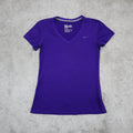 Nike Dri Fit Womens T Shirt Top V Neck Regular Fit Short Sleeves Blue Size XS