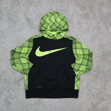 Nike Hoodie Boy Size M Black Green Dri Fit Pullover Fleece Sweater Long Sleeve