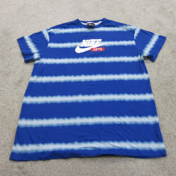 Nike Mens Crew Neck Striped T Shirt Short Sleeve Logo Blue White Size X Large