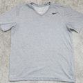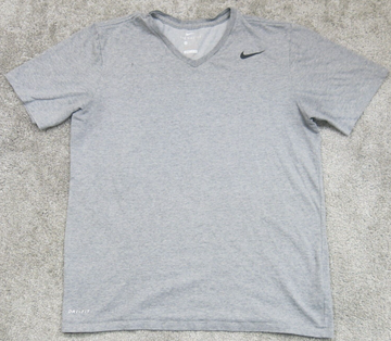 Nike Mens Dri Fit Sports Logo T Shirt Short Sleeves V Neck Gray Size Medium