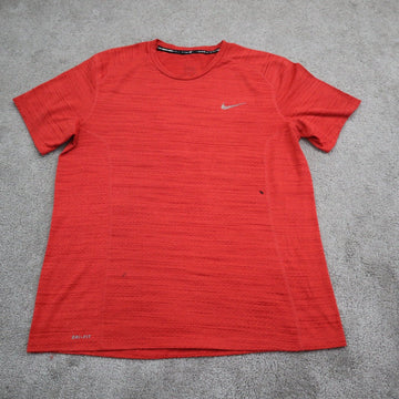 Nike Mens T Shirt Dri Fit Workout Short Sleeves Crew Neck Logo Red Size Medium