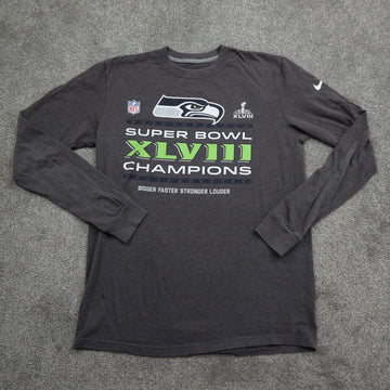 Nike NFL Mens Crew Neck T Shirt Long Sleeves Graphic Cotton Black Size Medium