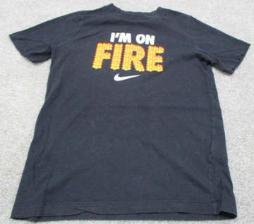 Nike On Fire Graphic T-Shirt Youth Boys Medium Black Short Sleeves Sports Shirt