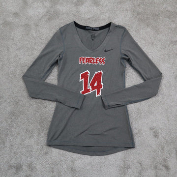 Nike Pro Girls Pullover Graphic T Shirt V-Neck Long Sleeve Gray Size Small