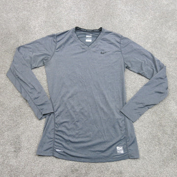 NIKE PRO Tee Boys Heather Black Size Small Fitted Long Sleeve Logo V-Neck