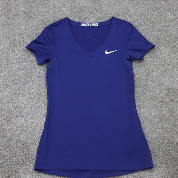 Nike Pro Women T Shirts Top Activewear Dri Fit Short Sleeve V Neck Purple Size S