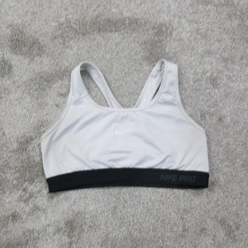 Nike Pro Womens Activewear Racerback Sports Bra Sleeveless Light Gray Black Sz M
