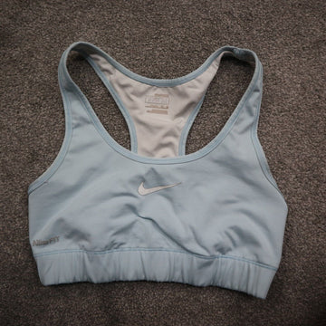 Nike Pro Womens Activewear Sports Bra Fit Dry Logo Light Blue Size Medium