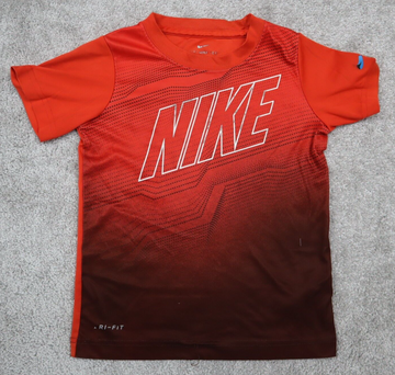 Nike Sports T-Shirt Boys Size 5 Orange Black Short Sleeves Graphic Sports Shirt