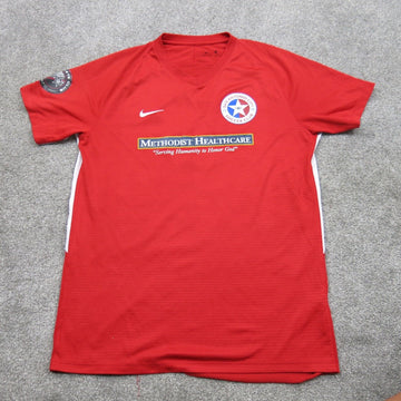 Nike T Shirt Mens Size Large Red Short Sleeve Dri Fit Classic Graphic Tee V Neck
