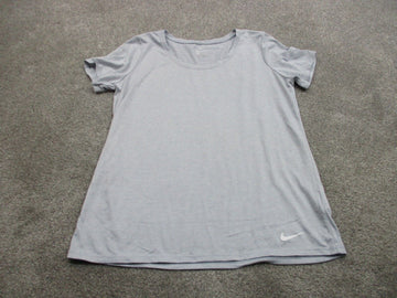 Nike T Shirt Womens Size Large Gray Logo Dri Fit Short Sleeve Tee Scoop Neck