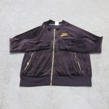 Nike Women Full Zip Up Velvet Jacket Long Sleeve Zipper Pocket Maroon/Purple XS