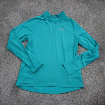 Nike Womens 1/4 Zip Sweatshirt Dri Fit Long Sleeves Mock Neck Aqua Blue Size M