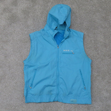 Nike Womens Full Zip up Vest Hooded Sleeveless Zipper Pockets Aqua Blue Size S