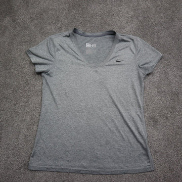 Nike Womens Pollover Casual T-Shirt Short Sleeves V- Neck Gray Size Medium