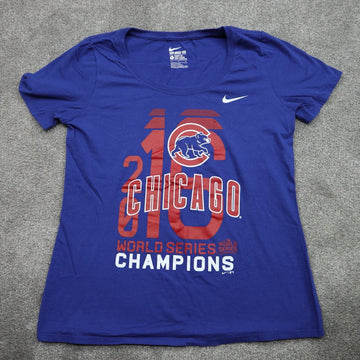 Nike Womens Pollover T-Shirt Athletic Cut Short Sleeves Graphic Tee Blue Size L