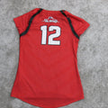 Nike Womens T Shirt Top V Neck Dri Fit Alamo #12 Short Sleeve Red Size Medium