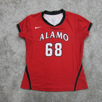 Nike Womens T Shirt Top V Neck Dri Fit Alamo #68 Short Sleeve Red Size Medium