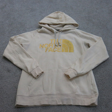 North Face Hoodie Womens M Cream Outdoors Spell Out Logo Pullover Sweatshirts