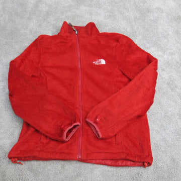 North Face Jacket Womens Large Red Full Zip Up Fleece Long Sleeve Logo Outdoors