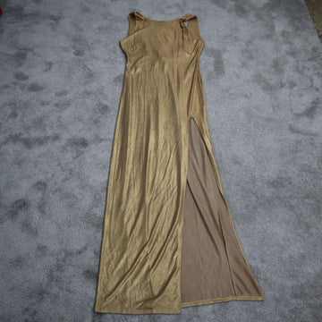 NWT Forever 21 Womens Leg Slit Maxi Dress Sleeveless Scoop Neck Tan Size Large