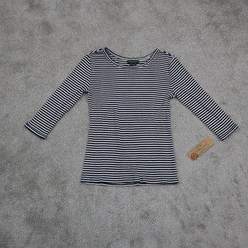 NWT Lauren Jeans Co Womens Pullover Knitted Top Striped 3/4 Sleeve Black White S