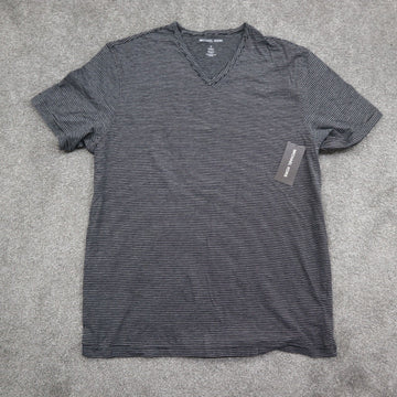 NWT Michael Kors Womens T Shirt Top Black Size M Stripe Short Sleeve V Neck