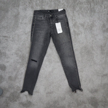 NWT Zara Jeans Girls Size 4 Brown Solid Mid Rise Skinny Denim Distressed Raw Hem