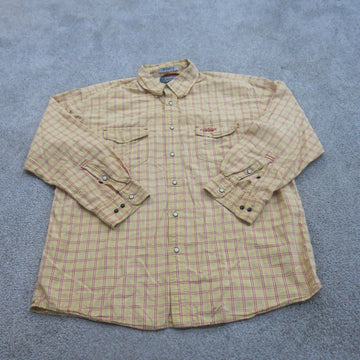 Orvis Shirt Mens Large Yellow 100% Cotton Long Sleeve Plaid Button Up Work Wear