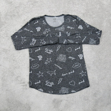 Pink Victorias Secret Womens Sleepwear Sweatshirt Long Sleeves Black Size Large