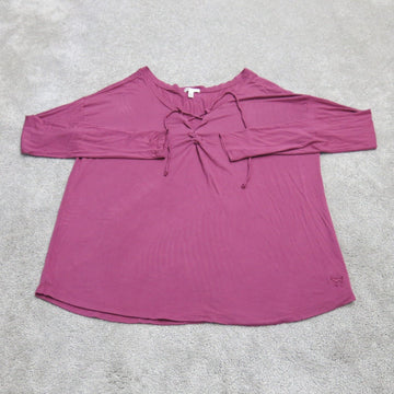 Pink Womens Super Soft Blouse Top Long Sleeves Lace up V Neck Pink Size Medium